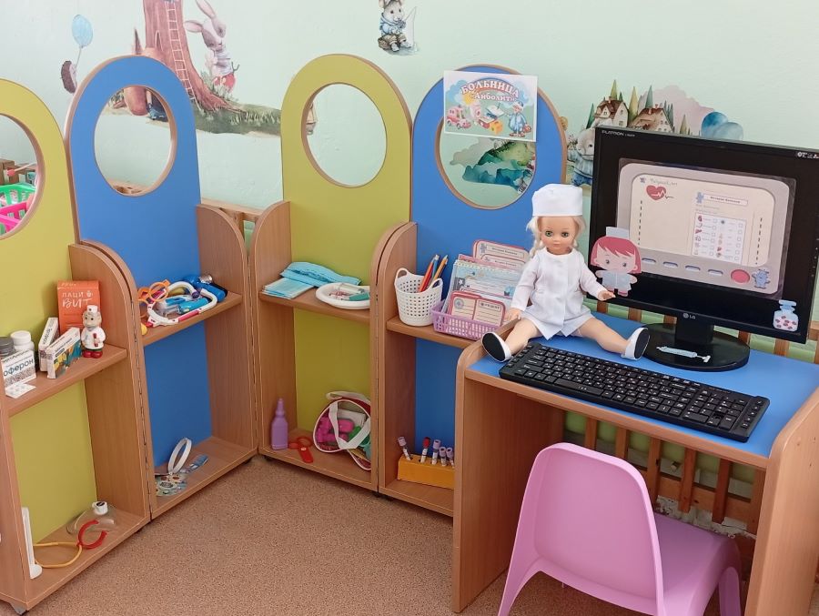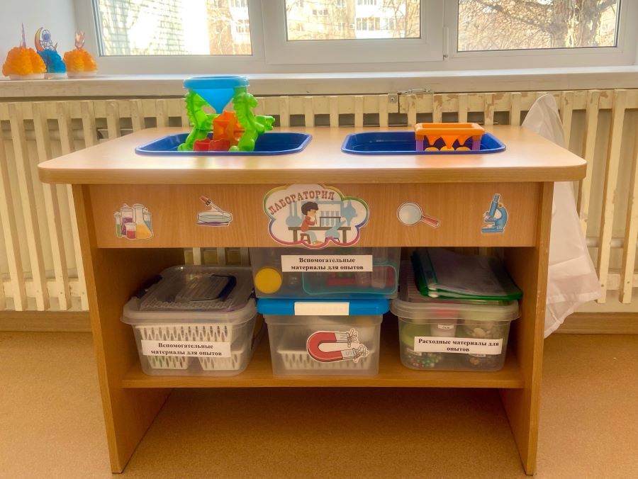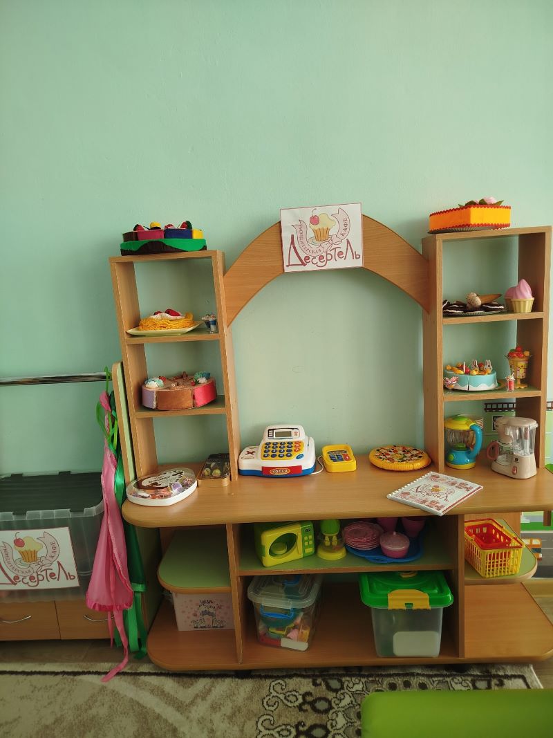 Также были представлены различные виды театров: на варежках, на кружках, би-ба-бо, на ложках и т.д. Воспитатель первой младшей группы № 2 представила развивающую среду для малышей. Был представлен центр музыкального развития, в котором имеются различные музыкальные инструменты, игрушки, погремушки. Интересно оформлена картотека музыкальных игр. Воспитатель второй младшей группы № 1 представила сюжетно – ролевую игру «Больница», в центре представлены атрибуты для игр «Аптека», «Узкие специалисты», «Врач общей практики» (белый халат, очки, картотека медицинских карточек и рецептов). В средней группе № 8 был представлен «Супермаркет». Широкий ассортимент продуктов поразил членов жюри: макаронные изделия, выпечка, пельмени – все выполнено из фетра. Также оформлена зона для продавца – кассира с кассовым аппаратом и конечно же разными видами денег. Воспитатели старшей группы № 7 интересно представили кондитерскую «ДесертеЛь». Все сладости были изготовлены вручную силами детей группы № 7, педагогов и родителей. На полках красовались торты, пирожные, конфеты, рулеты и т.д. Сюжетов для проигрывания было представлено несколько – кондитерская, кафе, магазин. Все необходимые атрибуты для проигрывания – спецодежда, кассовый аппарат, кофемашина, микроволновка, блендер – были представлены членам жюри. В разновозрастной группе № 9 члены жюри увидели настоящую лабораторию с микроскопами, колбочками, стеклышками. Для лаборантов имеется халаты, очки, шапочки и перчатки. Разнообразный материал для проведения опытов, исследуемый материал – все было в отдельных контейнерах. В подготовительной к школе группе № 6 была представлена сюжетно – ролевая игра «Школа», тетради и книги, доска и парты – все как в настоящей школе. Большую помощь в пополнении предметно-развивающей среды оказали родители, это говорит о тесном сотрудничестве детского сада с семьями воспитанников.