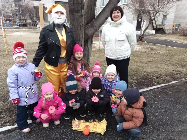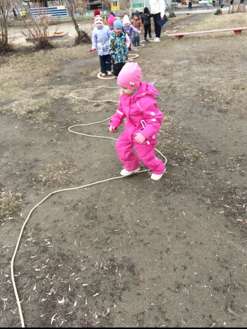 Во второй младшей группе детского сада № 1 оздоровительное мероприятие тоже проходило на свежем воздухе. Дети отправились в сказочное путешествие, встретили по дороге гномика, который привел ребят на волшебную поляну. Ребята во время путешествия преодолевали трудный путь: шли по извилистой тропе, по узкому мостику, прыгали по кочкам. Встретившись с лисой и медведем, дети сумели убежать от них, проявив быстроту и ловкость.