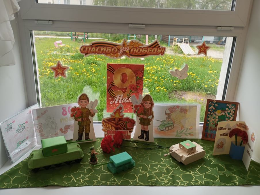 1. Декоративно – прикладное творчество «Спасибо за мир!» Поделки, композиции, объемные композиции, сувениры, аппликации, панно, отражали тематику конкурса – 80-летие Победы в ВОВ, работы были выполненных в различных техниках - совместные работы семейные работы. Победа в номинации досталась ребятам из средней группы № 8.